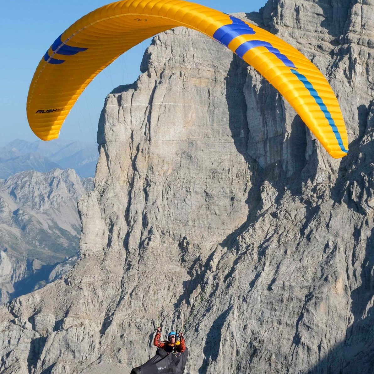 Skärm Ozone Rush 6 inkl speedsystem & ryggsäck. Sele Sup Air Evo lite 2 inkl karbinkrokar och nödskärmsremmar. Nödskärm Ozone Angel V2, Hjälm Icaro Nerv