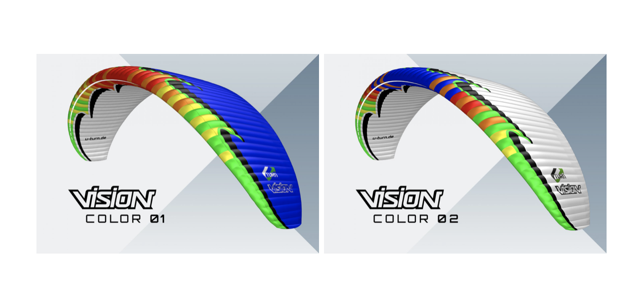 VISION är en överlägsen högpresterande mellanklass skärm. Vid den övre gränsen för B-klassen erbjuder den här skärmen en ny nivå av rolig flygning. Glidprestandan på 11,6 gör det möjligt att flyga iväg på episka cross-country äventyr. Så du kan följa din vision så långt din nyfikenhet tar dig. VISION kombinerar höga hastigheter och sportig prestanda med dämpade reaktioner i extrema flygsituationer. U -Turn ser innovativt tänkande som ett måste – så kravet på utvecklingen var att upprätthålla klassens lämpliga säkerhet och att samtidigt spränga prestationsgränsen.